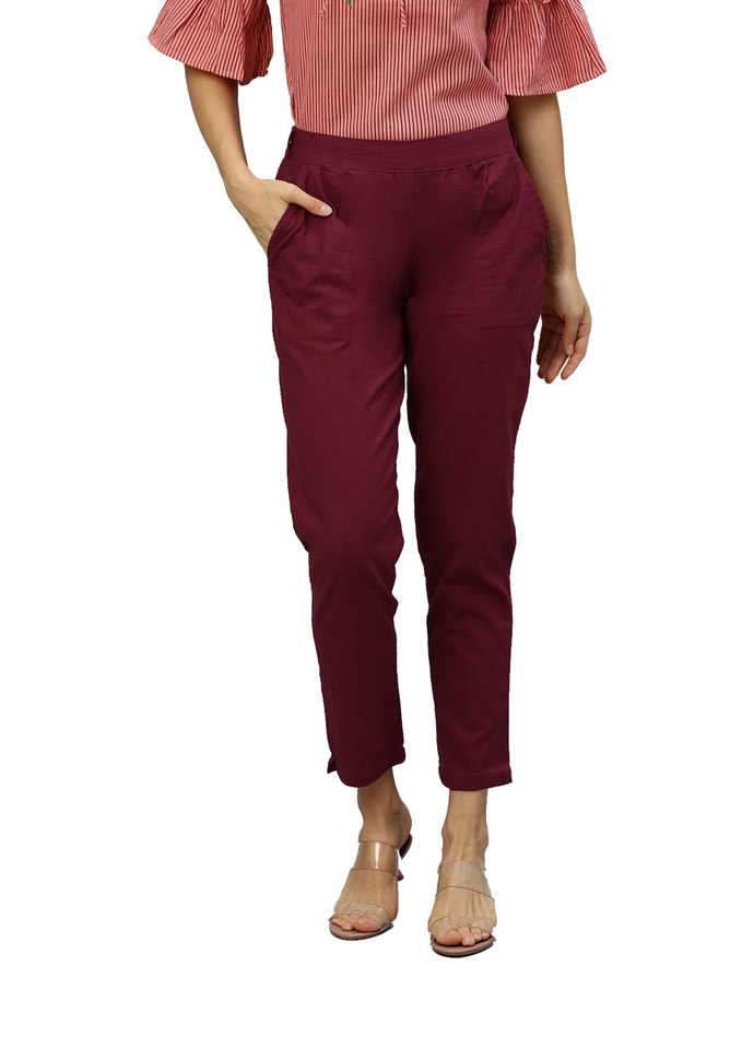 กางเกงขายาวผ้าฝ้ายเนื้อนุ่มระบายอากาศได้ดีสำหรับผู้หญิง สีมารูน ทรงปกติ ใส่สบาย เหมาะสำหรับใส่ทำงานหรือเดินทาง