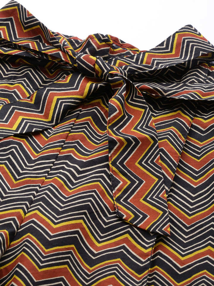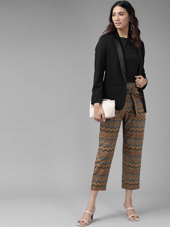 กางเกงขายาวผ้าฝ้ายพิมพ์ลายซิกแซกหลากสีสำหรับผู้หญิง เนื้อผ้านุ่ม ระบายอากาศได้ดี ทรงปกติ เหมาะสำหรับใส่ลำลอง ทำงาน เดินทาง หรือใส่ในชีวิตประจำวัน