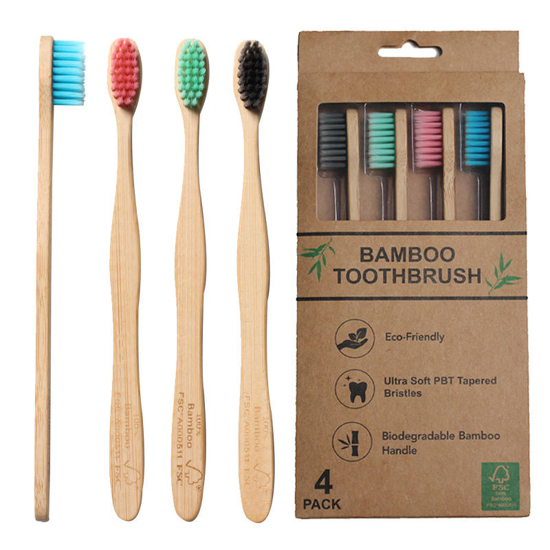 แปรงสีฟันขนนุ่มสำหรับผู้ใหญ่ บรรจุ 4 ชิ้น ดีไซน์หัวแบน ขนแปรงธรรมชาติ สำหรับใช้ในบ้าน ขายส่งข้ามประเทศ
