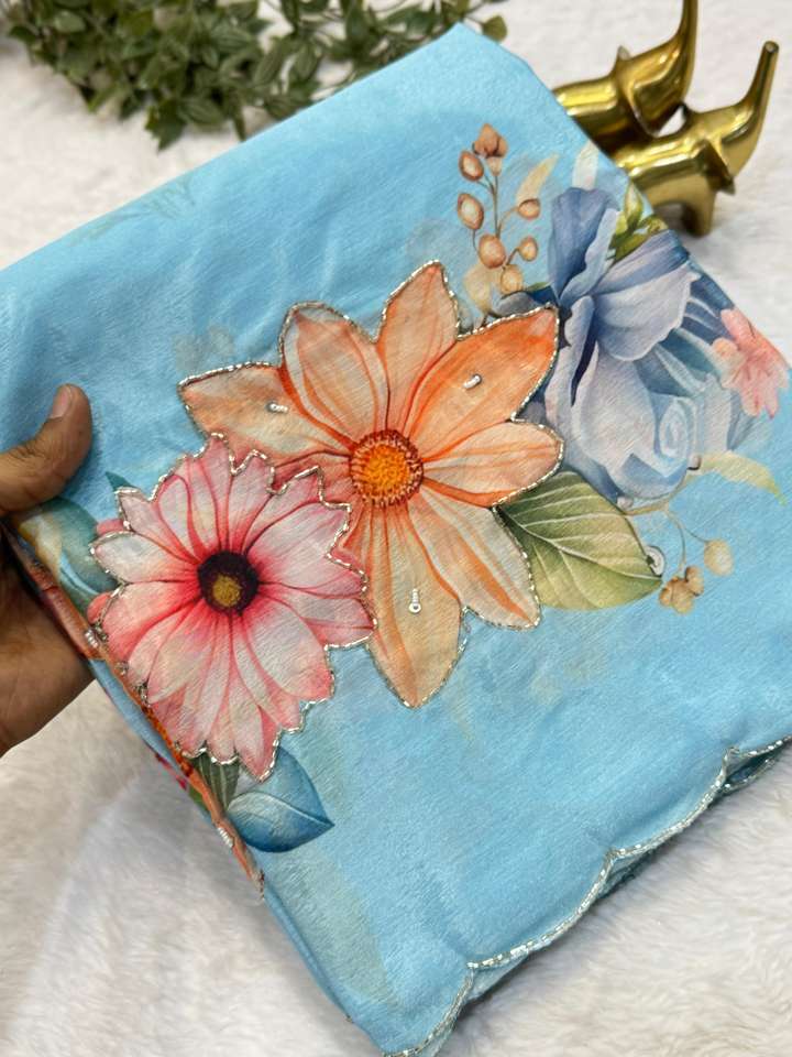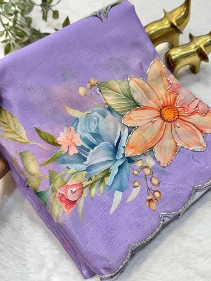 ผ้าไหมชิโนนเนื้อนุ่มสำหรับผู้หญิง พร้อมงานฝีมือประณีตและขอบผ้าลายฉลุ ผลิตในอินเดีย มีสินค้าพร้อมส่ง