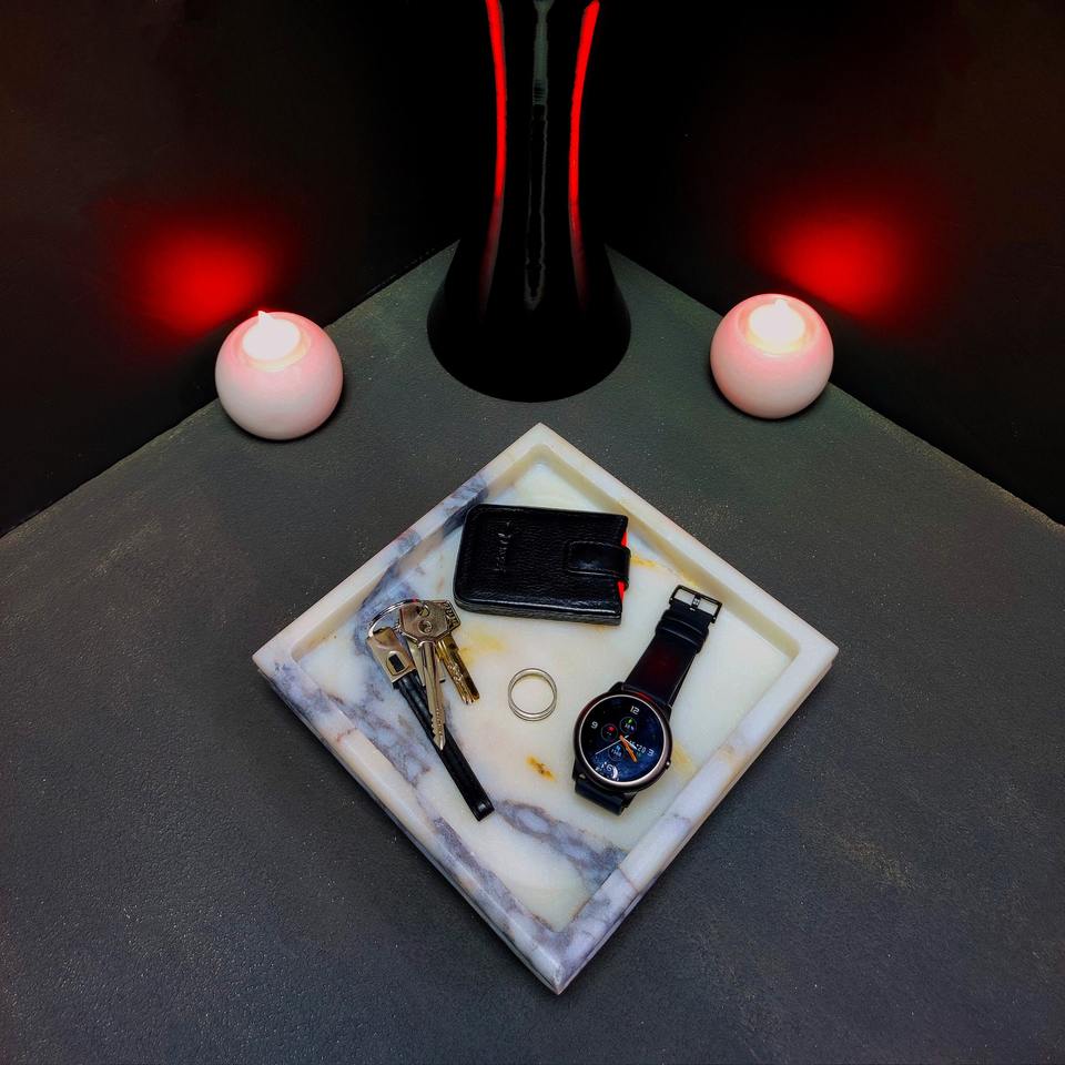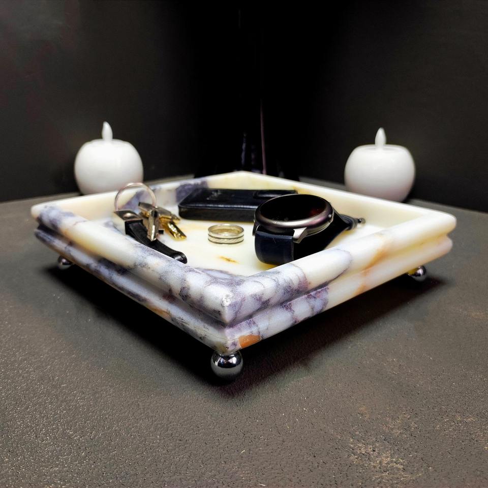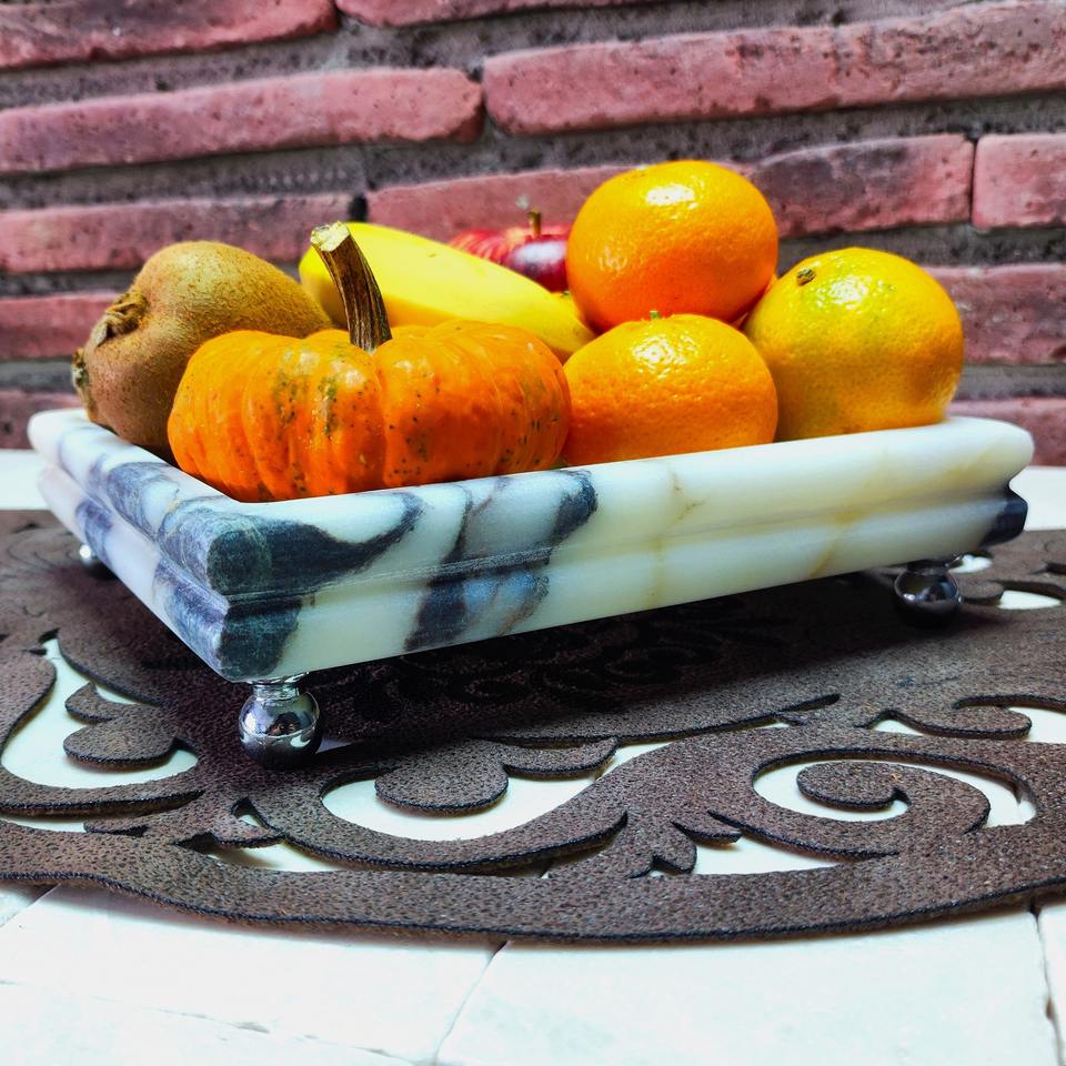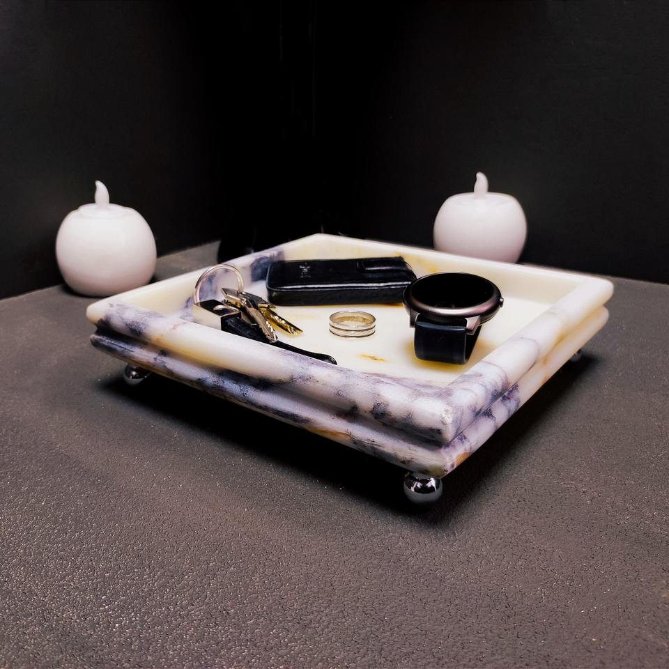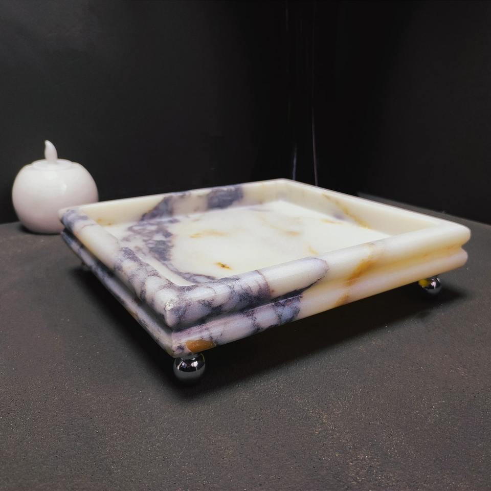 ถาดหินอ่อนสีอ่อนของนักออกแบบที่มีพื้นผิวที่หรูหราเหมาะสำหรับการให้บริการตกแต่งโต๊ะเครื่องแป้งและการจัดวางบนโต๊ะที่ทันสมัย