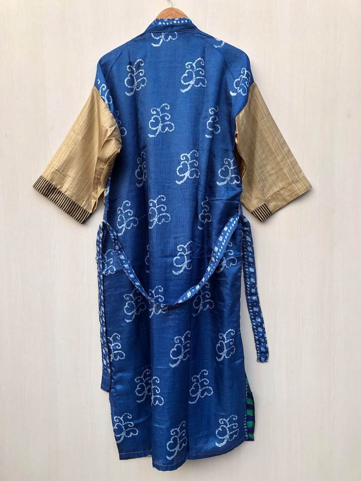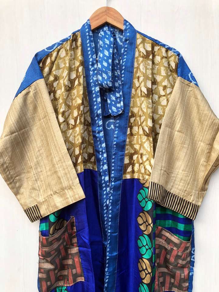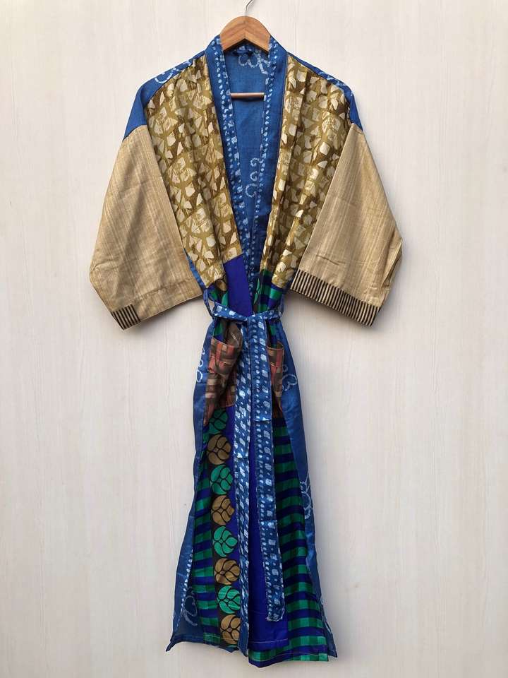 ชุดคลุมซารีเนื้อนุ่มสบาย สไตล์โบโฮ ชุดนอนผ้าไหมคิโมโน จากผู้ค้าส่งโดยตรง ชุดนอนคอวี ผ้ารีไซเคิล ชุดคลุมยาวเต็มตัว