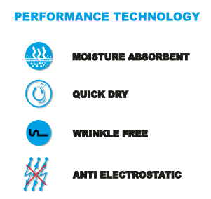 ป้องกัน Pilling, ป้องกันการหดตัว, ต่อต้านริ้วรอย, ระบายอากาศ, เป็นมิตรกับสิ่งแวดล้อม, แห้งเร็ว, Contrast Trim