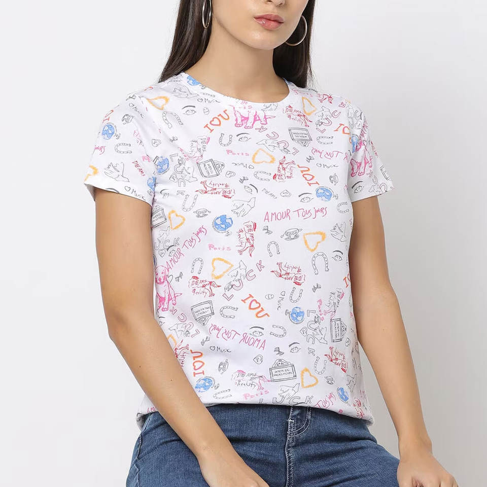 Soft Cotton Half Sleeved Regular Fit Women's Vintage Print T-Shirt for Summer Modern Crew Neck Daily Wear