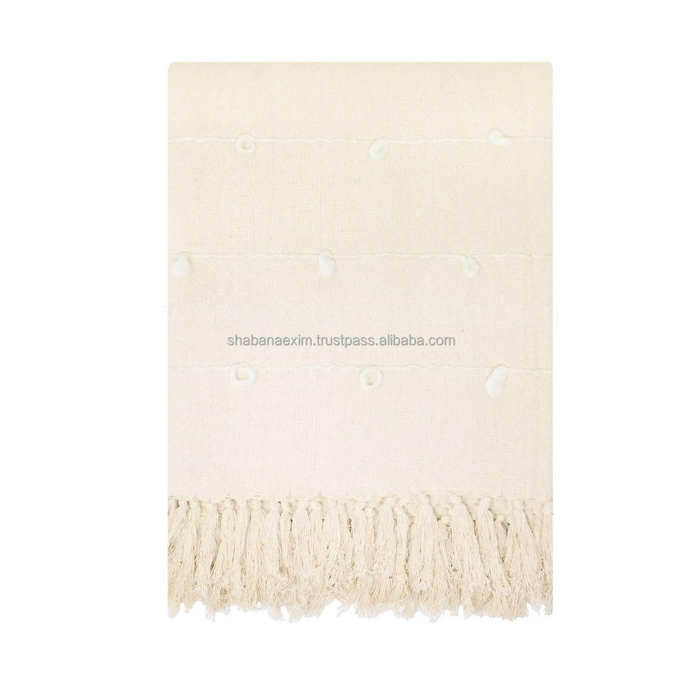ผ้าห่มผ้าฝ้ายเนื้อนุ่มดีไซน์ลายบล็อกสีธรรมชาติ