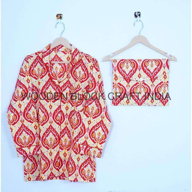 ชุดนอนผ้าฝ้ายเนื้อนุ่มพิมพ์ลายดอกไม้ด้วยมือ ชุดนอนแขนยาวสำหรับผู้หญิง ใส่สบายๆ ในช่วงฤดูร้อน เหมาะสำหรับใช้ในชีวิตประจำวัน