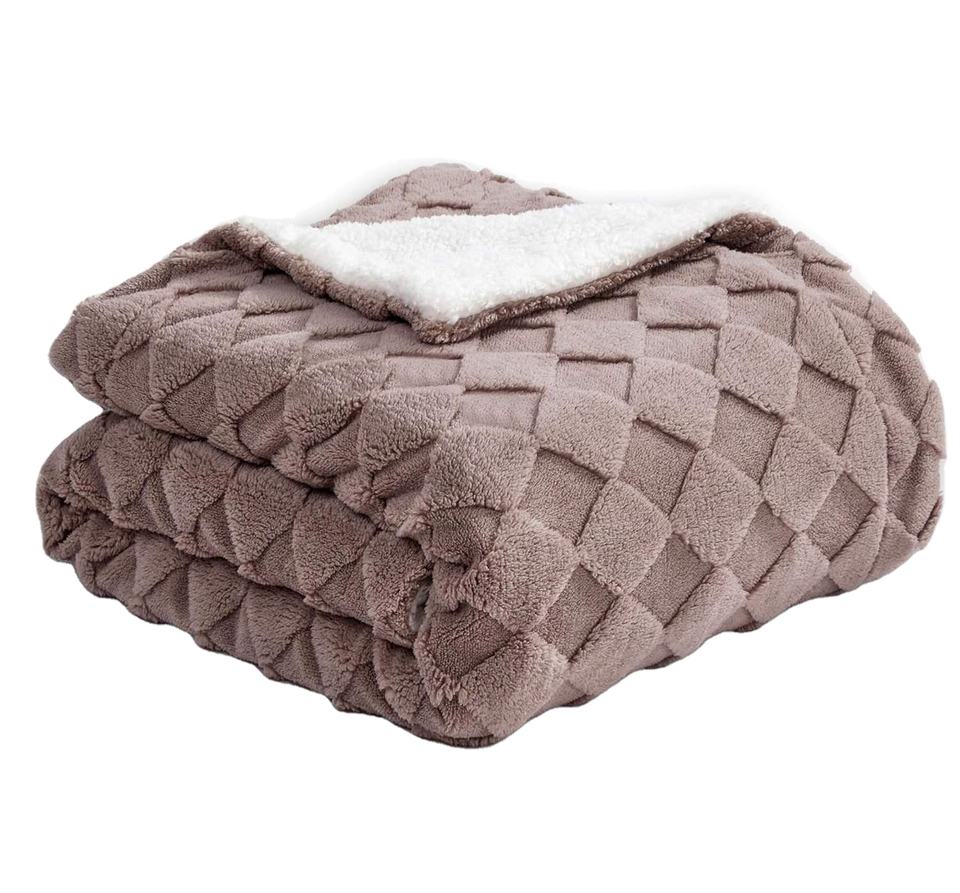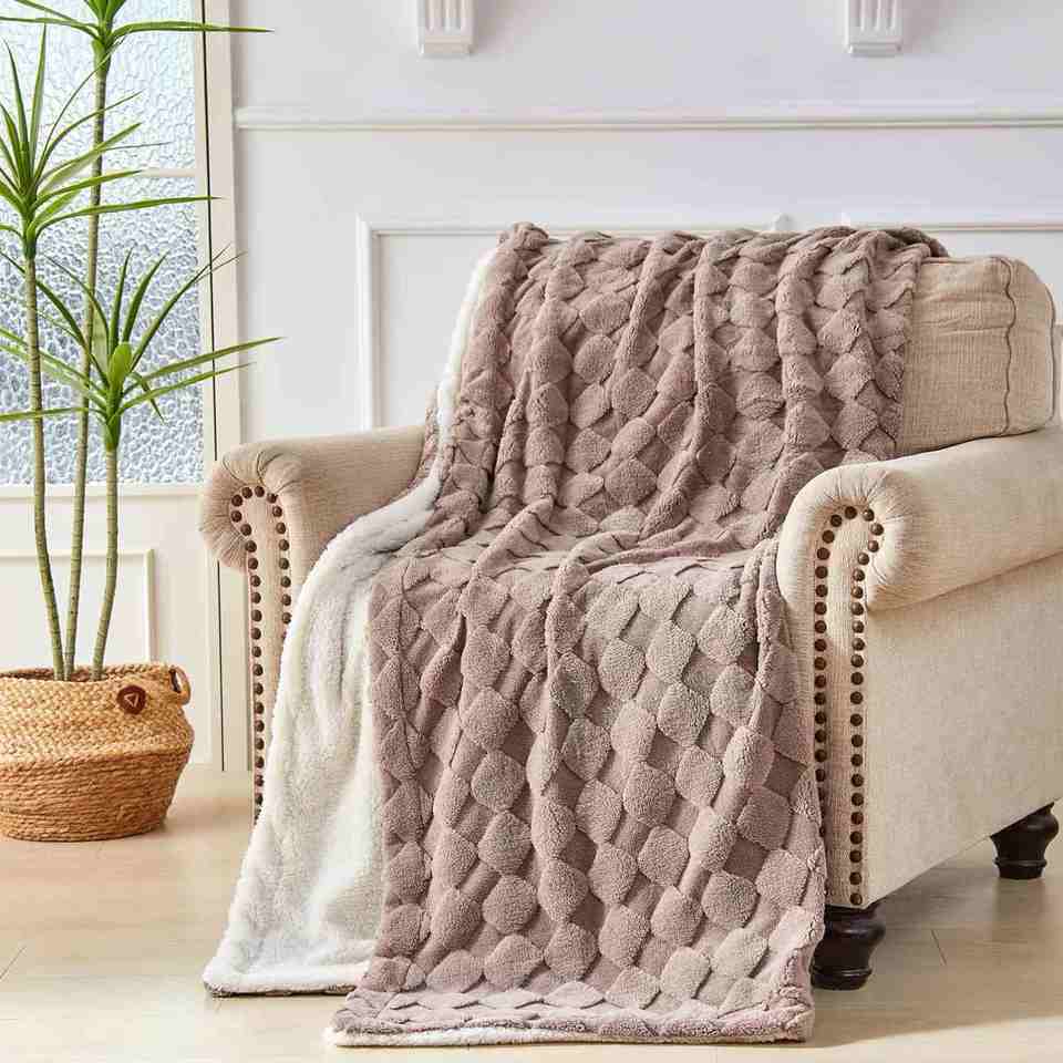 ผ้าห่มขนแกะเชอร์ปานุ่มสบายผ้าห่มคู่หนาอบอุ่นสำหรับฤดูหนาวนิ้วผ้าแจ็คการ์ดดีไซน์ตกแต่งด้วย3D ผ้าห่มหนานุ่มสำหรับปูเตียง