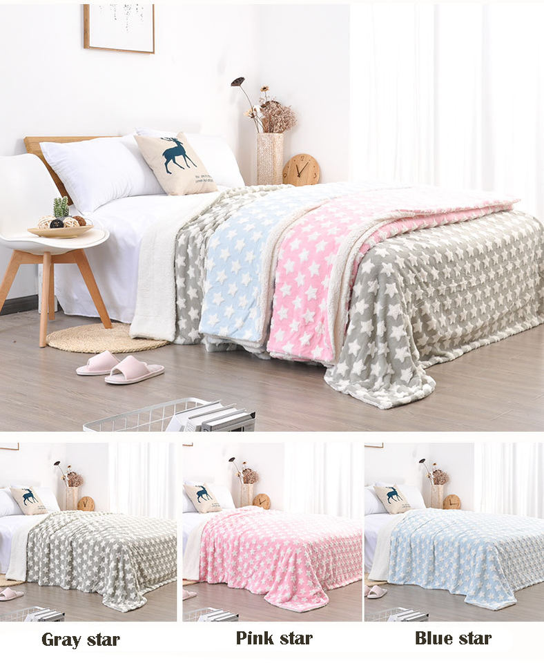 ผ้าห่มถักสองชั้นผ้าแจ็คการ์ดเชอร์ปาแบบนอร์ดิกเรียบง่ายลายสัตว์น่ารักสองด้านนุ่ม