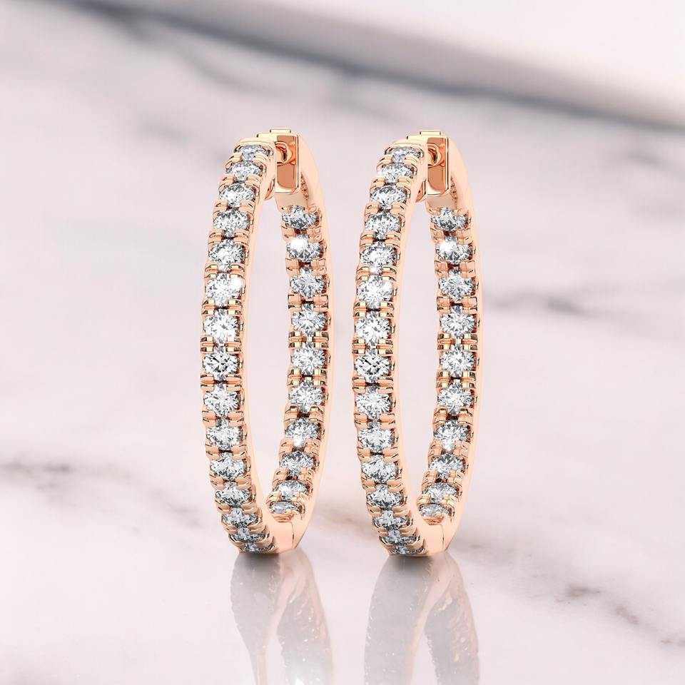 ต่างหูห่วงเพชรสำหรับปลูกในห้องแล็บทรงกลมสีโรสโกลด์แบบมีบานพับ2.00Ct
