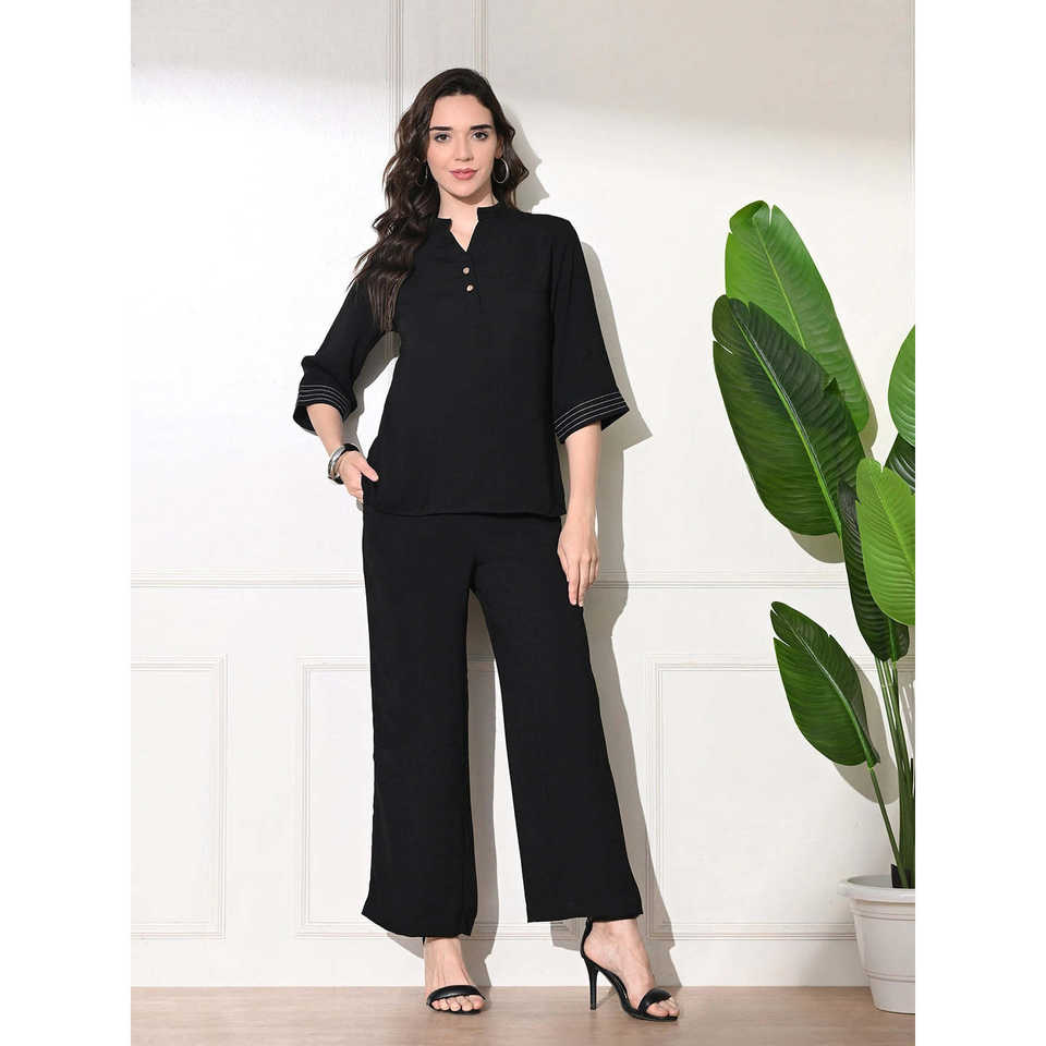 เสื้อคอจีนปักลายเนื้อนุ่ม สไตล์ลำลอง แมทช์กับกางเกงทรงตรงเข้ารูป ให้ลุคชิคและสบายในฤดูร้อน