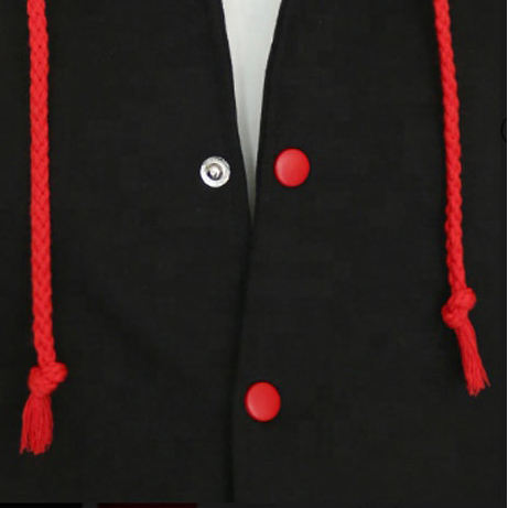 ด้านหน้า, ด้านหลัง, แขนเสื้อด้านซ้าย, แขนเสื้อด้านขวา, ขอบล่าง, หลังคอ