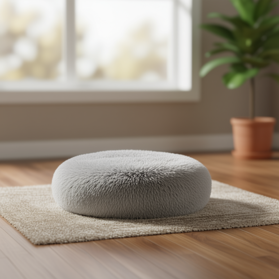 ที่นอนสัตว์เลี้ยงขนนุ่มทรงกลมขนาดใหญ่ รังแสนสบายสำหรับสุนัขและแมว ใช้ภายในบ้าน ถอดซักได้ บุด้วยขนสัตว์เทียม สีเทา