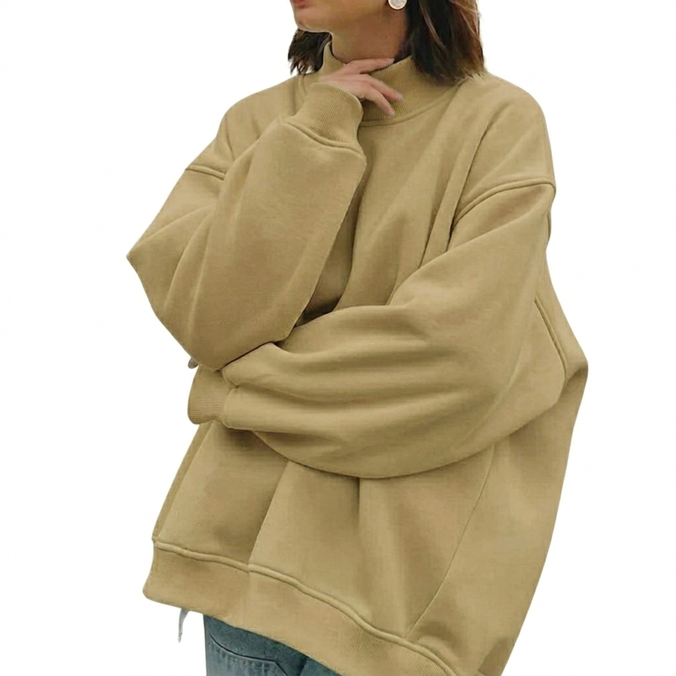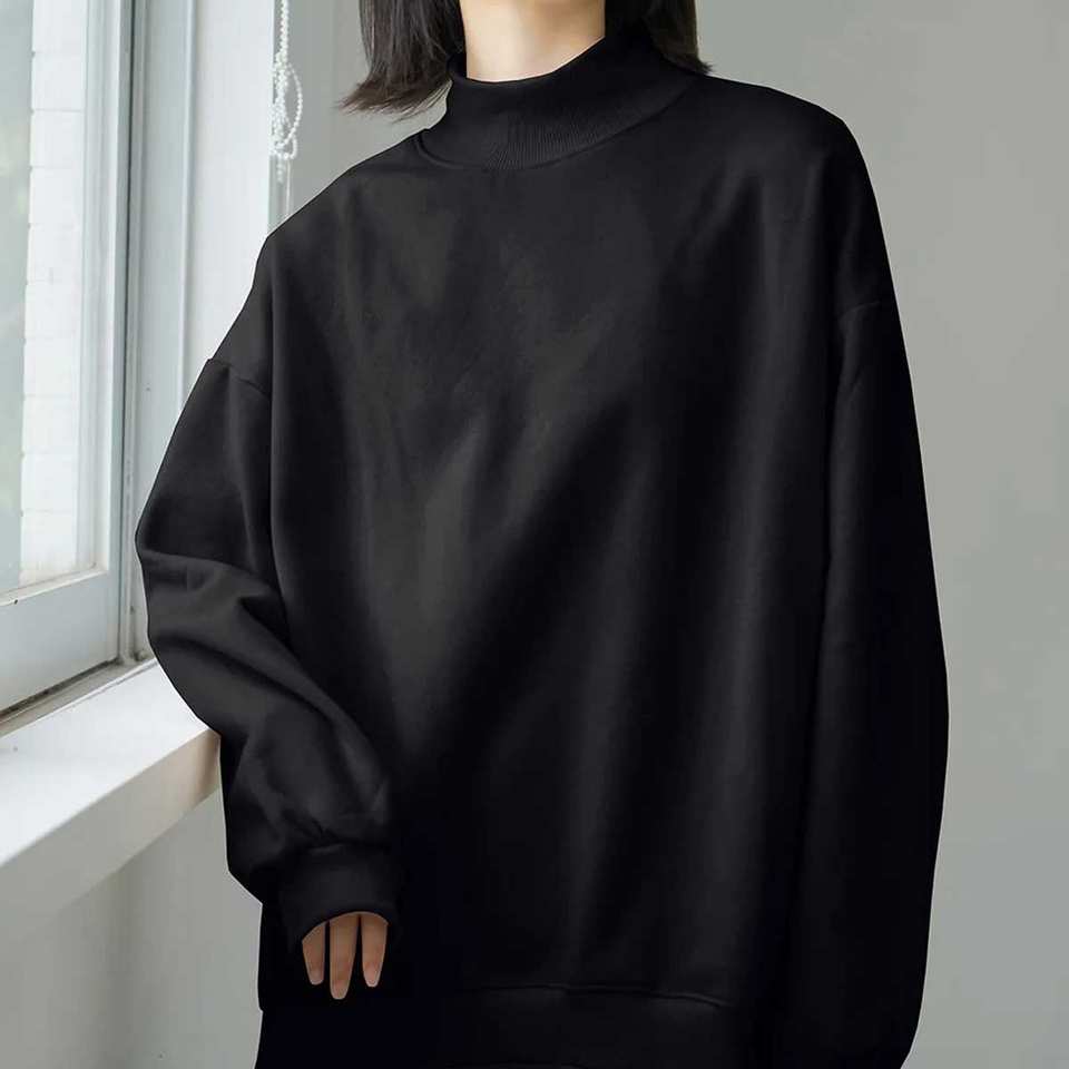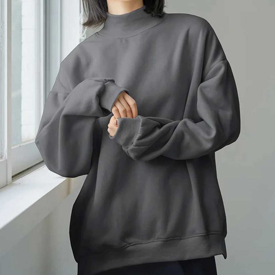 เสื้อสเวตเชิ้ตผ้าฟลีซเนื้อนุ่มสำหรับฤดูใบไม้ร่วงและฤดูหนาว คอเต่าแบบสวม ดีไซน์เรียบง่าย สวมใส่สบาย เหมาะสำหรับพักผ่อน