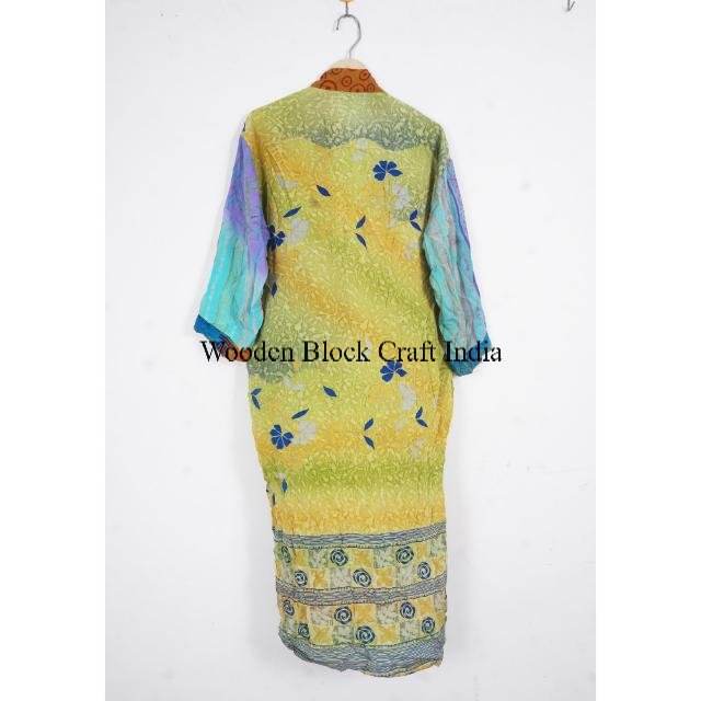 ชุดคลุมผ้าไหมลายดอกไม้สำหรับผู้หญิง ชุดกิโมโนยาวสไตล์โบฮีเมียน ชุดเดรสแขนยาวสำหรับฤดูร้อนและฤดูใบไม้ผลิ ชุดเดรสขายส่ง