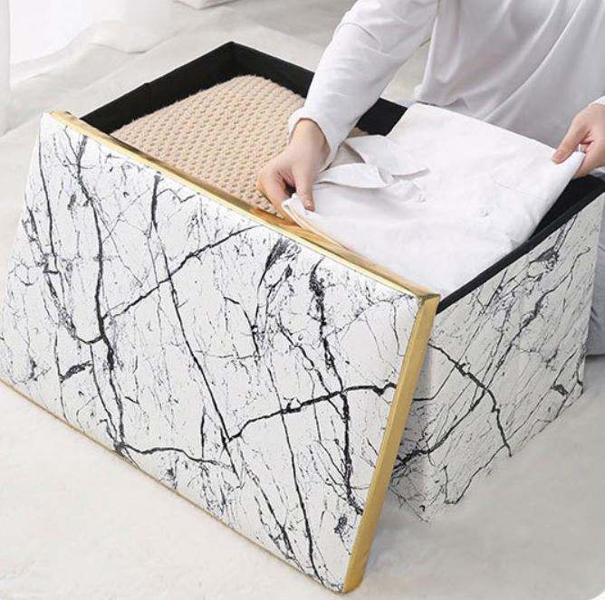 กล่องเก็บของอเนกประสงค์ทรงลูกบาศก์หุ้มหนัง PU นุ่ม ใช้เป็นที่วางเท้า วางหนังสือ นิตยสาร หมอน ผ้าห่ม
