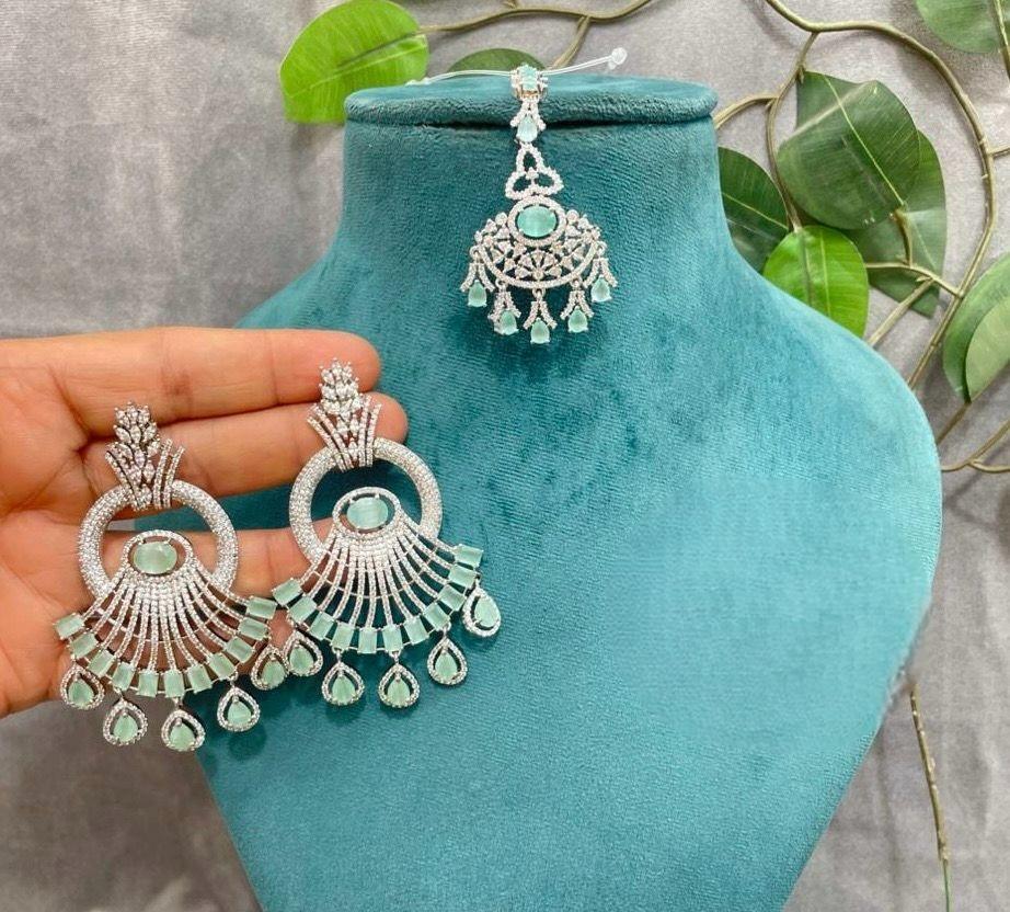 ต่างหูและติ๊กกะประดับเพชร CZ ดีไซน์ทันสมัย คุณภาพเยี่ยม เคลือบเงินอย่างดี สไตล์หรูหรา สำหรับผู้หญิงและเด็กผู้หญิง เหมาะสำหรับงานแต่งงาน