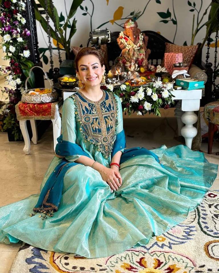 ชุดราตรีผ้าไหมสีทองและชุดปักลายพร้อม dupatta