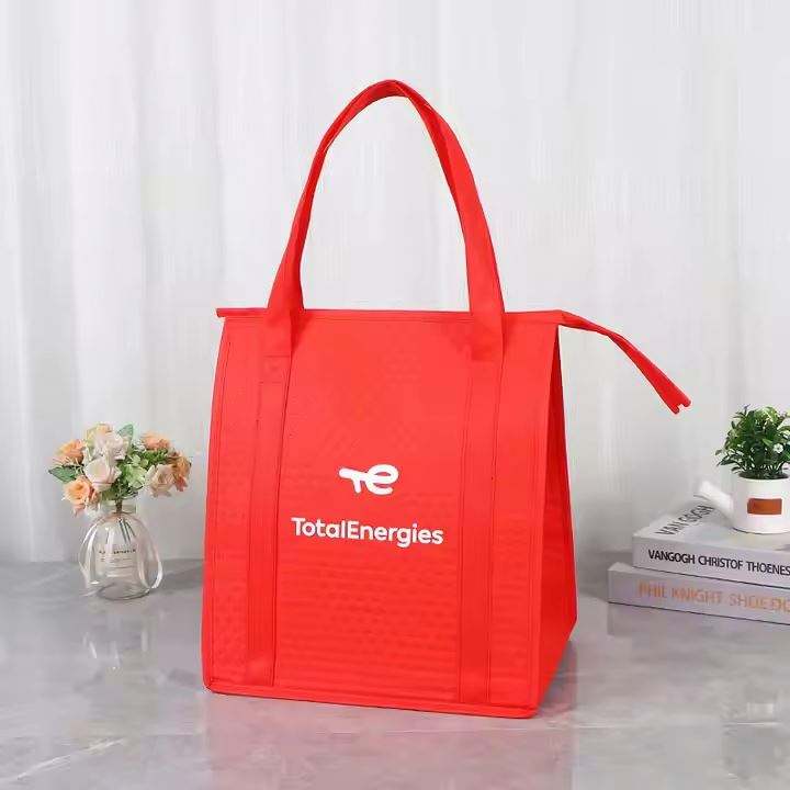 กระเป๋าใส่อาหารแบบหิ้ว หูจับนุ่ม ผลิตจากผ้าไม่ถักทอ เป็นมิตรกับสิ่งแวดล้อม ใช้แล้วทิ้งได้ พร้อมฉนวนกันความร้อนอะลูมิเนียมฟอยล์