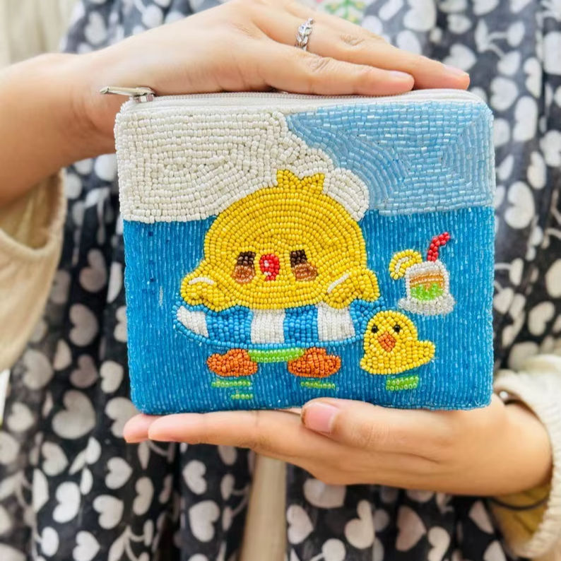 Soft Handmade Coin Pouch with Embroidery Compact Beaded Purse for Girls beaded purse