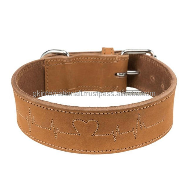 ปลอกคอสุนัขหนังสัตว์แบบนิ่มปรับได้เต็มรูปแบบพร้อมการเย็บลายหัวใจแฟนซีและฮาร์ดแวร์ทำจากสแตนเลส