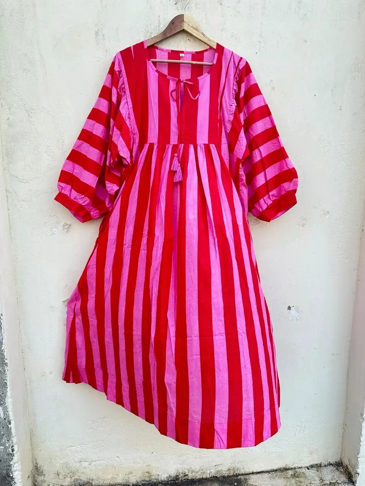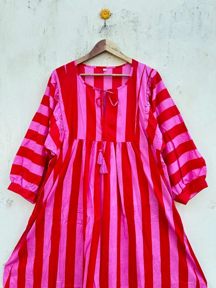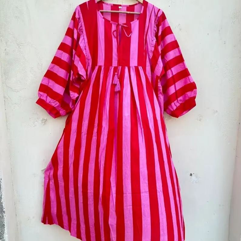 เดรสยาวคลุมเข่าผ้าฝ้ายอินเดียสำหรับผู้หญิงชุดเดรสยาวคอลเลกชั่นคอลเลกชั่นชุดผ้าฝ้ายออร์แกนิคสวย