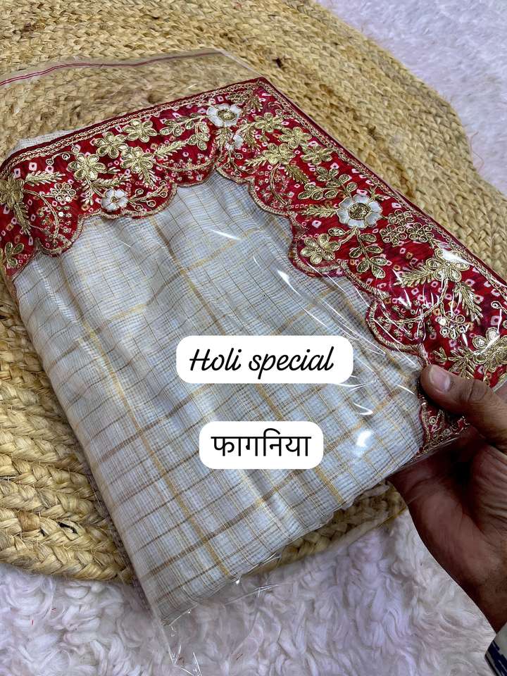 ชุดส่าหรีสีขาวลาย Kota doriya แบบนุ่มมีแถบคาดศีรษะหนักผ้าลูกไม้จากอินเดียและเสื้อผ้าปากีสถาน