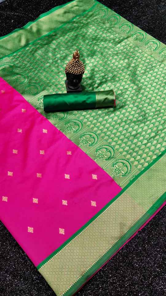 เสื้อส่าหรีผ้าไหมลิ้นจี่เนื้อนุ่ม สีขาวชมพู งานปักดิ้นทอง ซารีแบบดั้งเดิมของอินเดีย ผ้าไหมซารีบานาราสี คันชิปุราม รอยัล เอ็กซ์โป