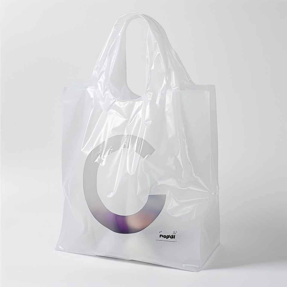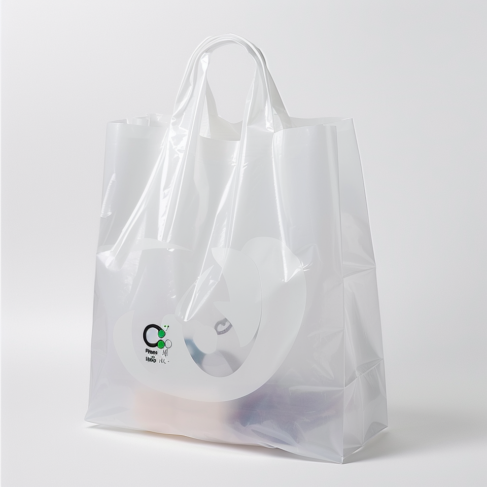 ถุงช้อปปิ้งพลาสติกแบบมีห่วงนุ่มจับบรรจุภัณฑ์ฝ้าหูหิ้วหรูหราสั่งทำได้สำหรับร้านขายของชำขอบคุณ