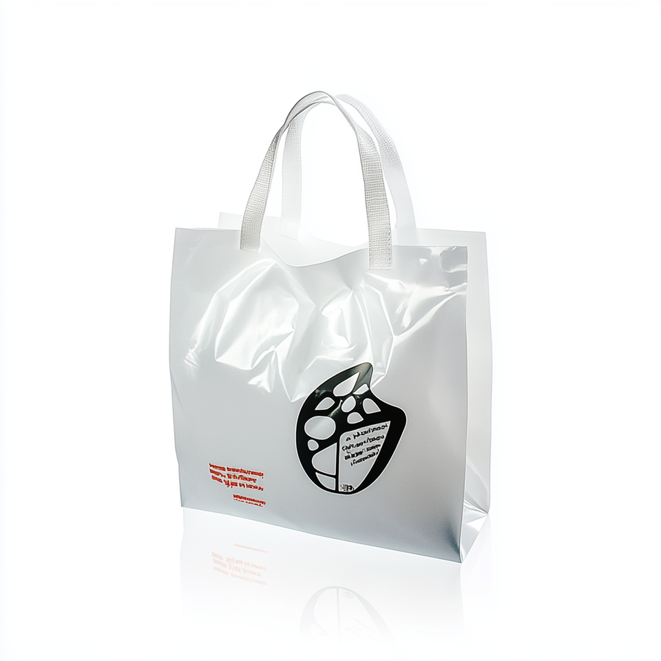 กระเป๋าช้อปปิ้งพลาสติกแบบห่วงนุ่มสำหรับพกพาสำหรับร้านอาหารคุณเสื้อยืด HDPE มีโลโก้