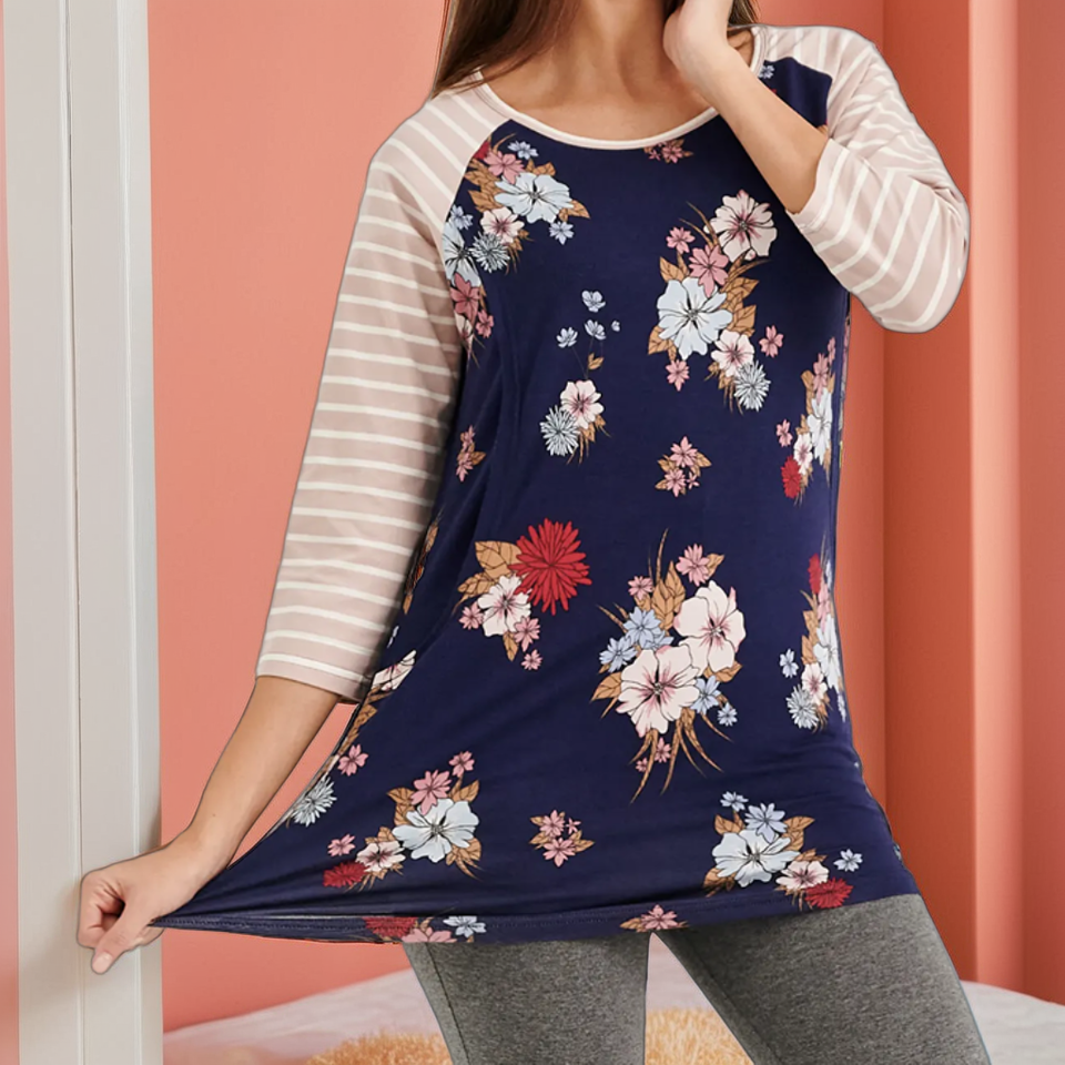 เสื้อสวมหัวคุณแม่, เสื้อยืดพิมพ์ลายดอกไม้นุ่มเข้าถึงได้ง่ายสำหรับคุณแม่