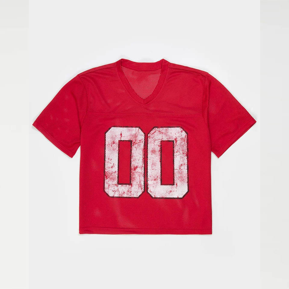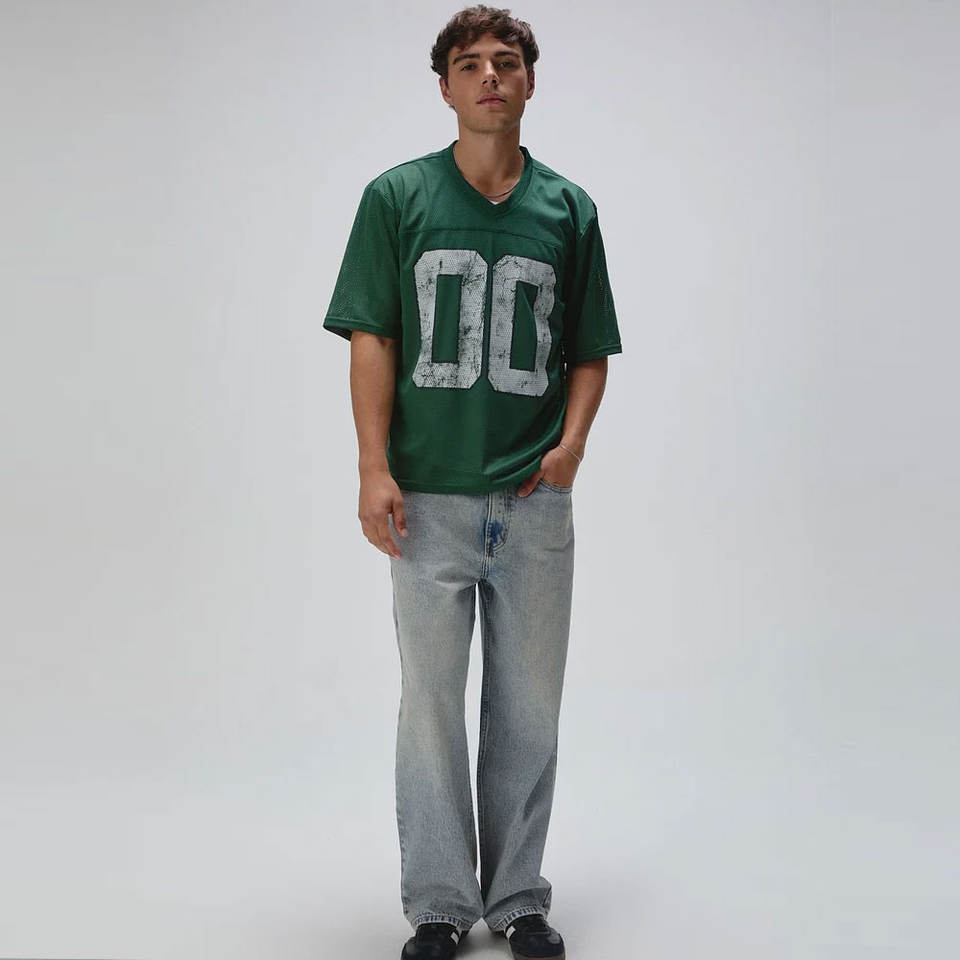 เสื้อยืดตาข่ายคอวีแนวสตรีทผ้านิ่มสไตล์บ็อกซี่คอวีผ้าโปร่งเสื้อบ็อกซี่คุณภาพพรีเมียมพร้อมคอวี