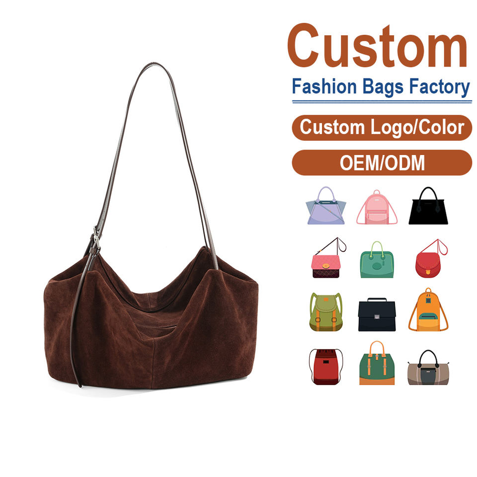 กระเป๋าถือใต้วงแขนหนังนูบัคเนื้อนุ่ม สายสะพายปรับได้ กระเป๋าสะพายไหล่ทรงโท้ทขนาดใหญ่สำหรับผู้หญิง สไตล์เรโทร พรีเมียม รับสกรีนโลโก้ได้