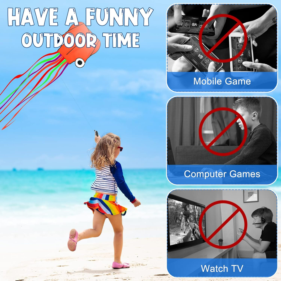 ว่าวปลาหมึกนุ่มน้ำหนักเบา พกพาสะดวก ประกอบง่าย เหมาะสำหรับการเดินทางไปชายหาดและเล่นในสวน