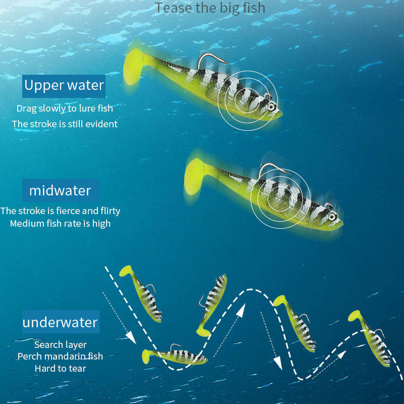 เหยื่อตกปลา PVC นิ่ม หัวจิ๊ก หางแบบใบพัด เหยื่อปลอมเหมือนจริง สำหรับตกปลาในน้ำจืด ปลาบาส ปลาเทราต์ ปลากะพง ปลาแซลมอน ใช้ได้ทั้งในแม่น้ำและทะเล