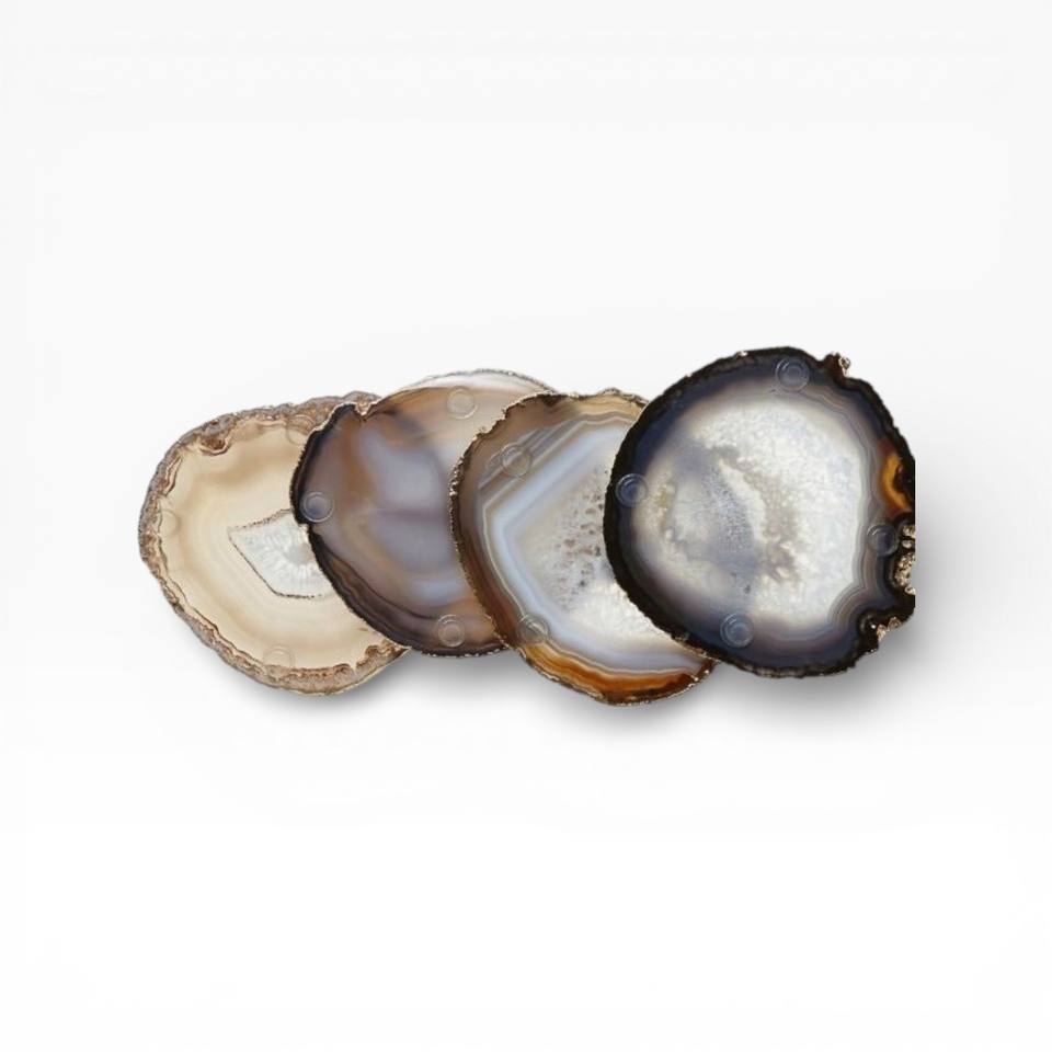 ชุดจานรองแก้วหินอาเกตสีชมพูอ่อน เทา และลาเวนเดอร์ พร้อมขอบสีทอง สำหรับตกแต่งโต๊ะอย่างหรูหราในบ้านและสำนักงาน