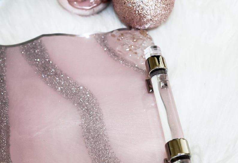 ถาดเสิร์ฟงานแต่งงานอเนกประสงค์ทรงสี่เหลี่ยมผืนผ้าลายพืชสไตล์อาร์ตเดโคสีชมพูอ่อนทำจากเรซิ่น