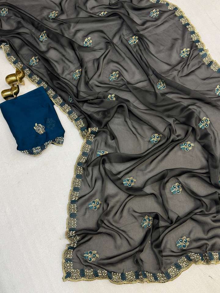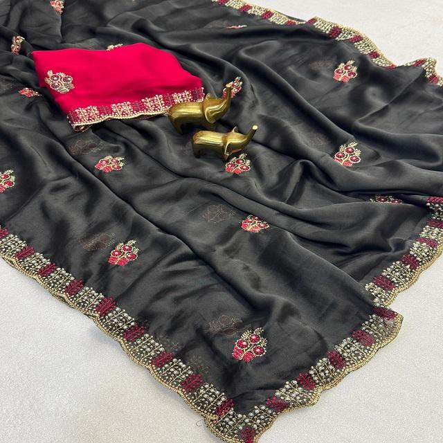 ส่าหรีผ้าไหมนุ่มลายปักและงานหินดีไซน์สวยสำหรับผู้หญิงผู้ใหญ่
