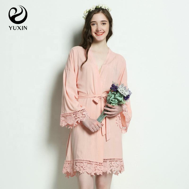ชุดคลุมลูกไม้ผ้าเรยอนนุ่มสำหรับผู้หญิงชุดนอนแฟชั่นสำหรับงานแต่งงานของ6013