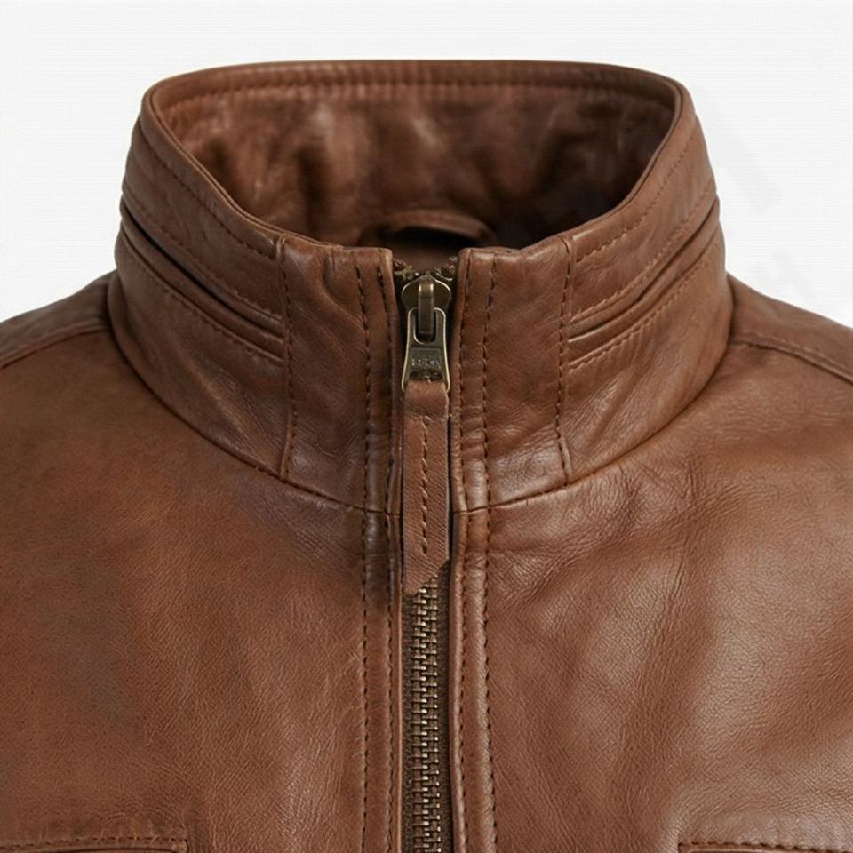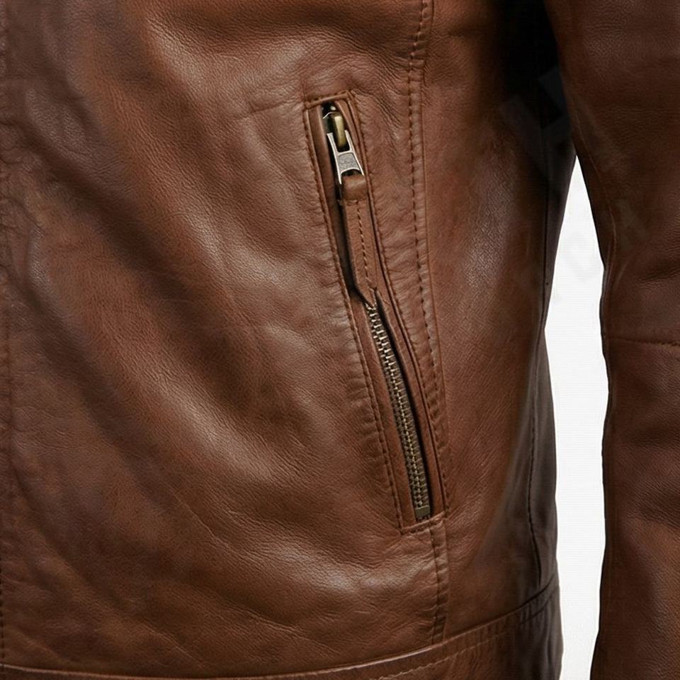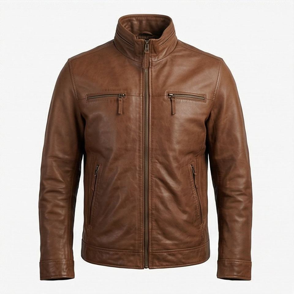 แจ็คเก็ตหนังแท้ทรงนักขี่มอเตอร์ไซค์ คอสูง สำหรับผู้ชาย หนังแกะแท้คุณภาพสูง ฟอกฝาดอย่างดี ใช้ได้ทุกฤดู พร้อมอุปกรณ์ป้องกันอย่างดีเยี่ยม