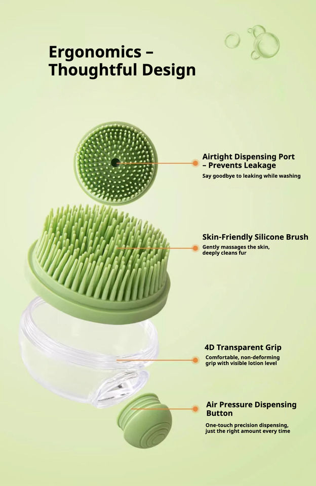 Dual-use for bathing and massaging, Helps remove loose hair and dirt easily, Non-slip ergonomic design for comfortable grip, Suitable for cats, dogs, and other small pets