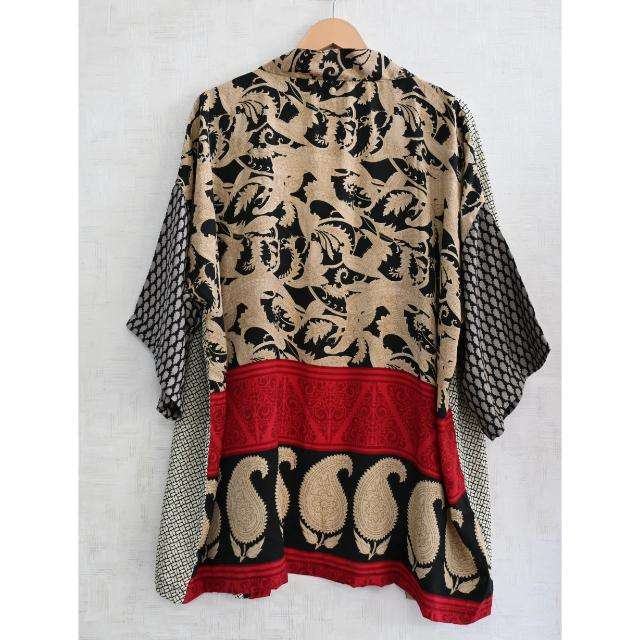 ชุดคลุมกิโมโนผ้าไหมเนื้อนุ่มแบบแพทช์เวิร์ค ไซส์ใหญ่ ระบายอากาศได้ดี ความยาวระดับเข่า ลายพิมพ์อินเดีย ชุดนอนสั้นสำหรับผู้หญิง
