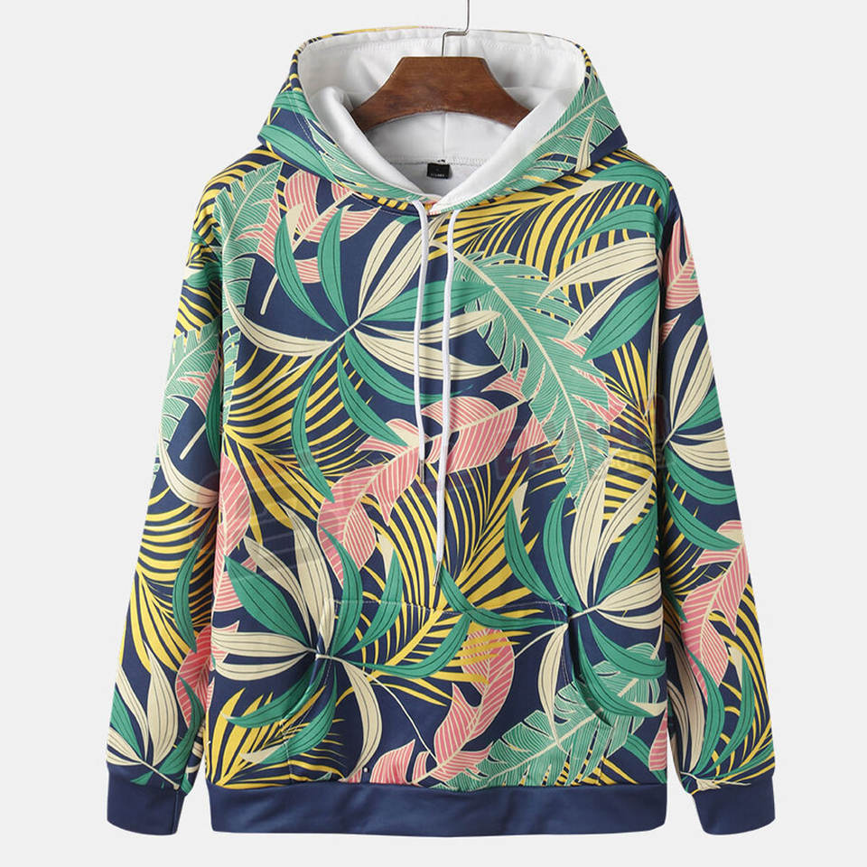 เสื้อฮู้ดซับลิเมชันนิ่มสำหรับผู้ชายมีฮู้ดพิมพ์ลายสีสดใสและเข้ารูปในเมือง