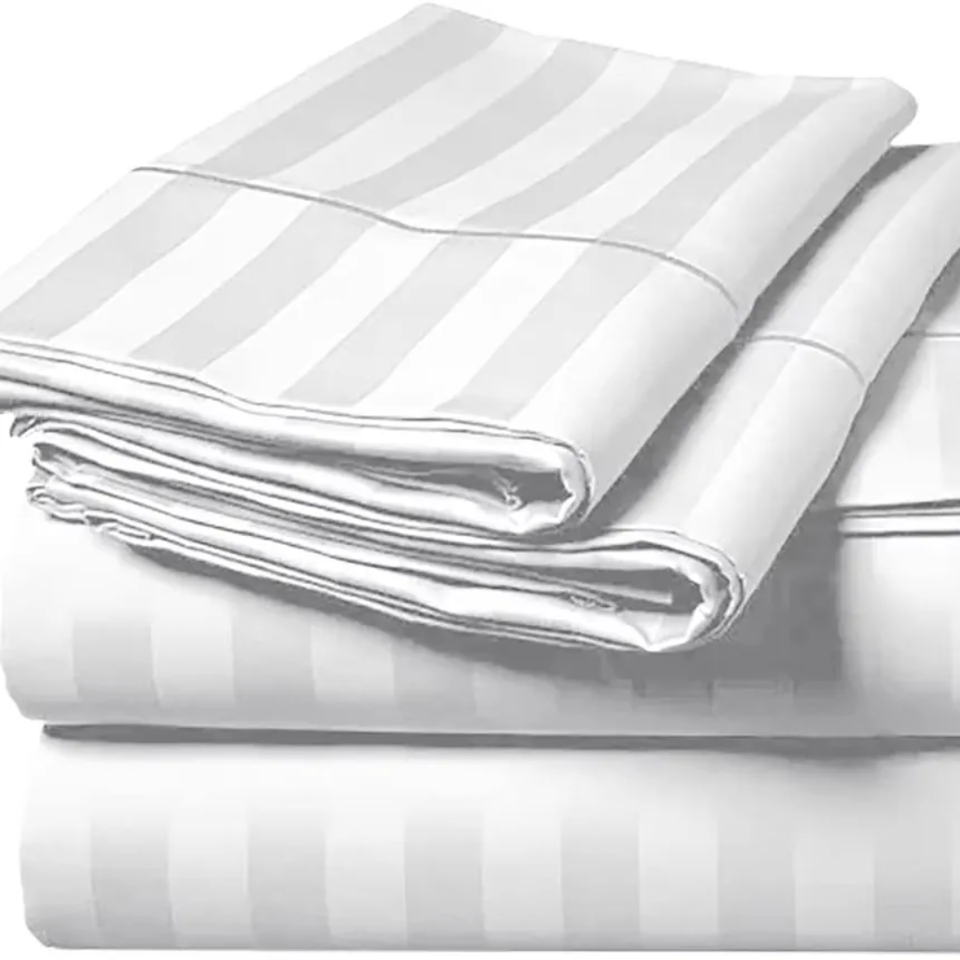 ชุดเครื่องนอนโรงแรมลายทางสีขาว 1 ซม. สัมผัสนุ่ม ผ้าไมโครไฟเบอร์ทนทาน ผ้าปูที่นอนนุ่มสบาย สำหรับโรงแรม โมเต็ล และห้องพัก