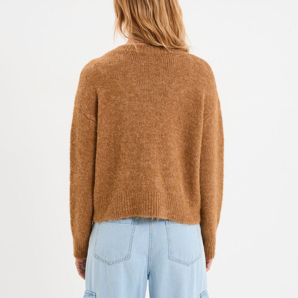 เสื้อสเวตเตอร์ถักเนื้อนุ่มสำหรับผู้หญิงคอเสื้อแบบคลาสสิกสวมใส่สบายระบายอากาศได้ดีให้ความอบอุ่นในฤดูหนาวและความสบาย