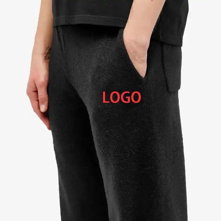 กางเกงสเวตเตอร์ผ้าขนโมแฮร์ผ้าสักหลาดอ่อนแบบลำลองแนวสตรีทพิมพ์ลายตรงด้านหน้าเรียบระบายอากาศขายส่ง
