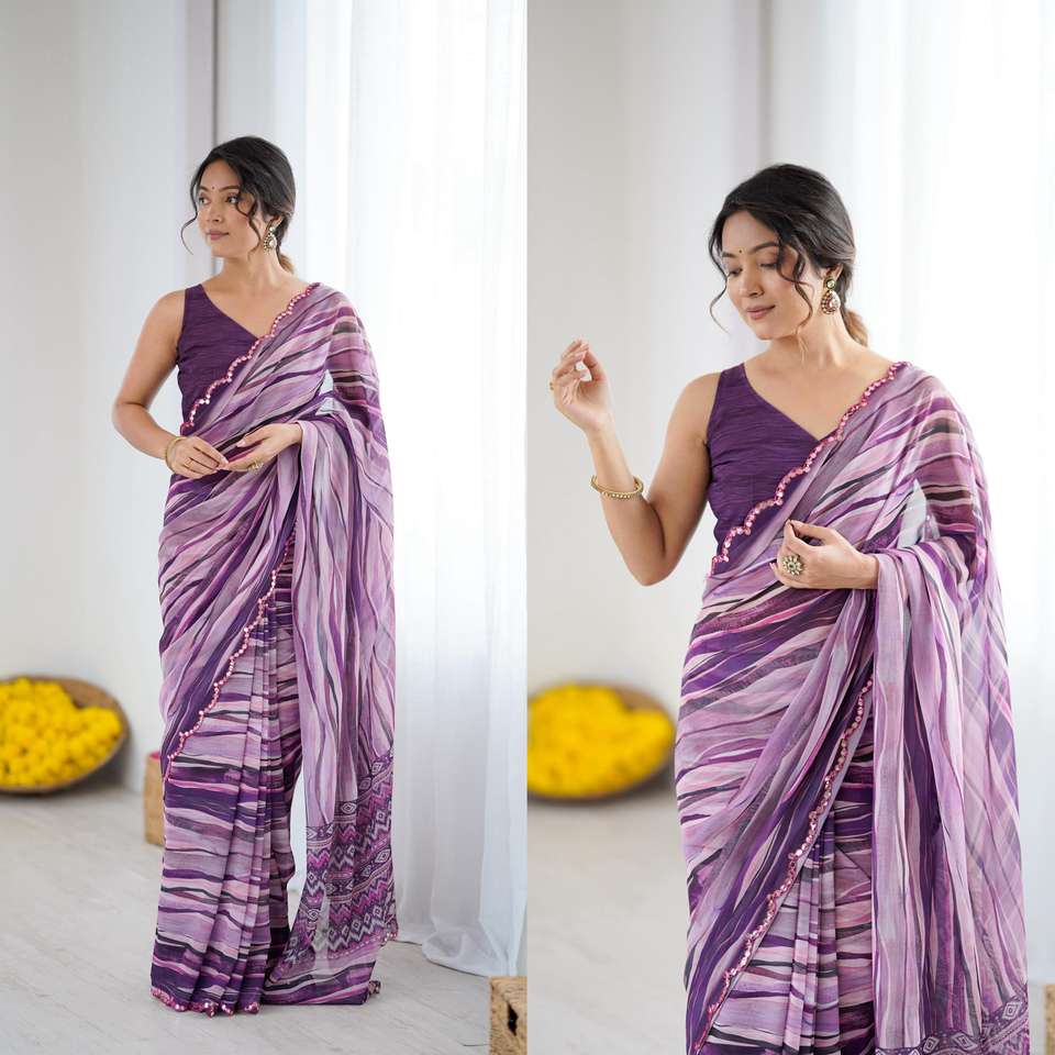 ผ้าแพรแข็งเนื้อนุ่มทันสมัยพิมพ์ลายดอกไม้ผ้าส่าหรีผ้าไหมที่มีขอบกระจกสำหรับใส่ทำงานเหมาะสำหรับทุกโอกาส