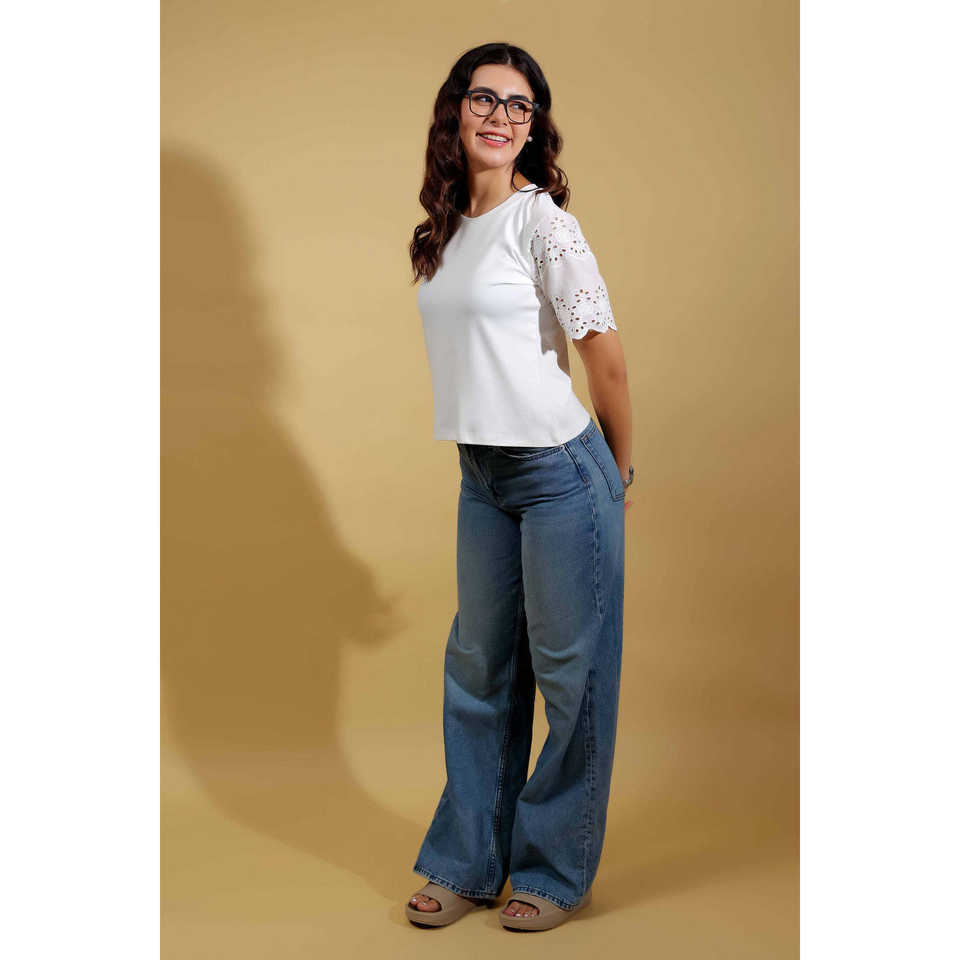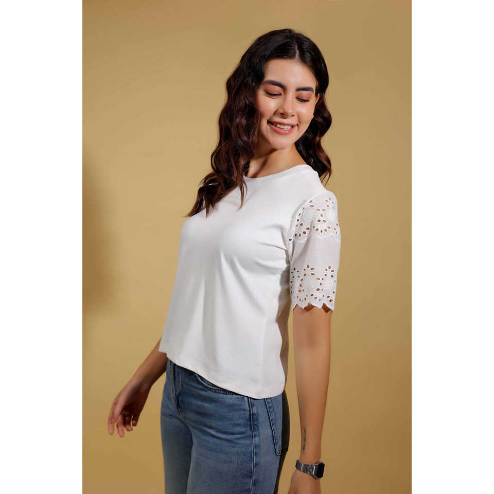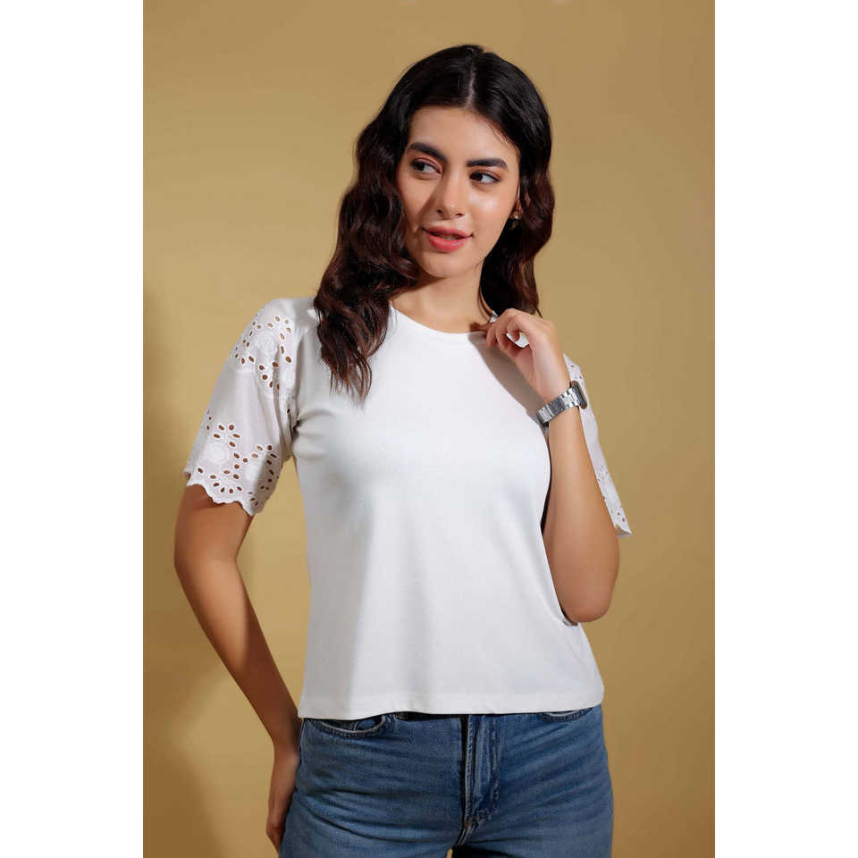 เสื้อยืดผ้าฝ้ายเทนเซลสีขาวนุ่ม ทรงปกติ คอกลมคลาสสิก งานฝีมือประณีต สวมใส่สบาย
