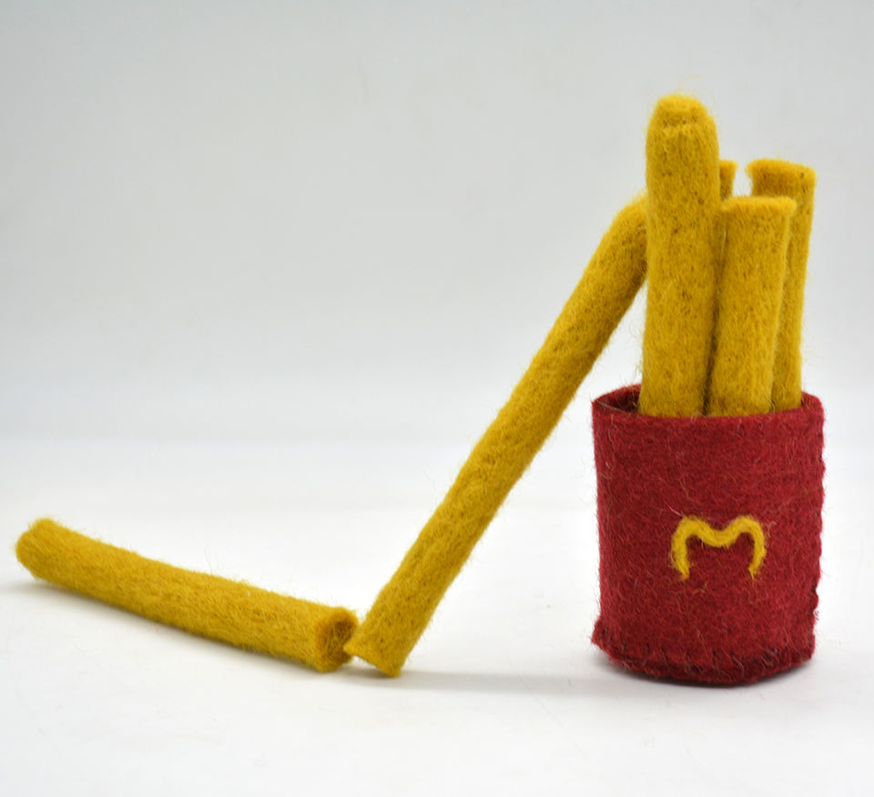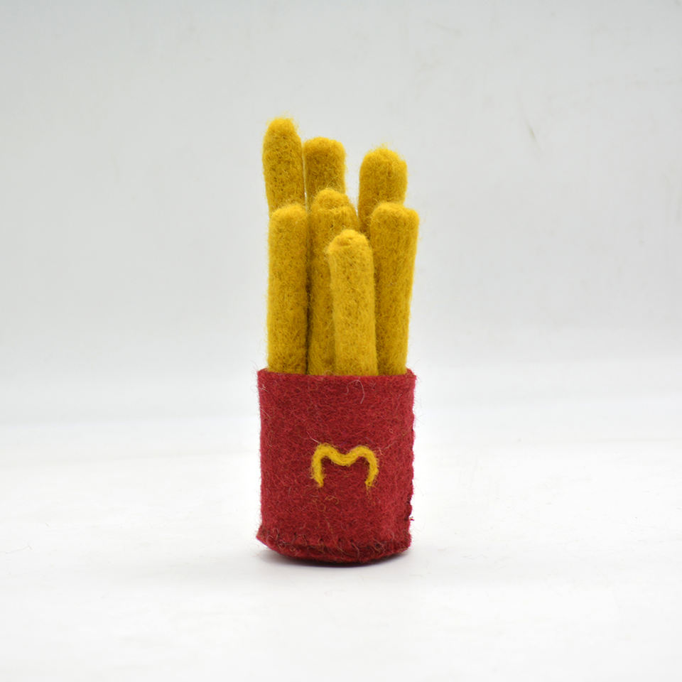 ของเล่นอาหารจำลองเฟรนช์ฟรายส์ทำจากผ้าสักหลาดขนสัตว์นุ่มสำหรับเด็ก ของเล่นมอนเตสซอรี่สำหรับเล่นในบ้าน - ทำด้วยมือจากเนปาล
