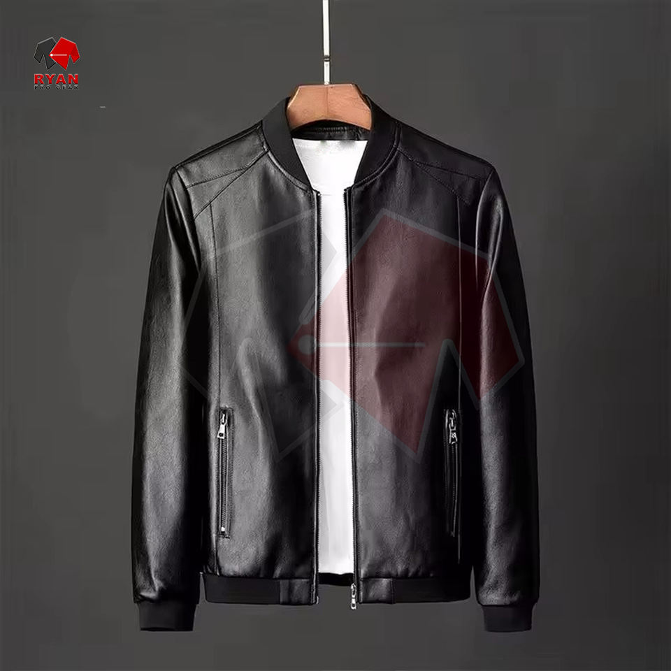 เสื้อแจ็คเก็ตหนังแกะบุขนแกะสำหรับผู้ชาย ฤดูหนาว ผ้าทอเนื้อนุ่ม สกรีนโลโก้ตามสั่ง สีพื้น ระบายอากาศ กันลม ด้านหน้าแบบตั้ง