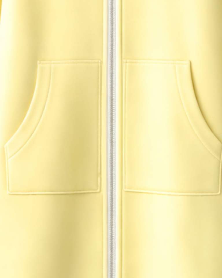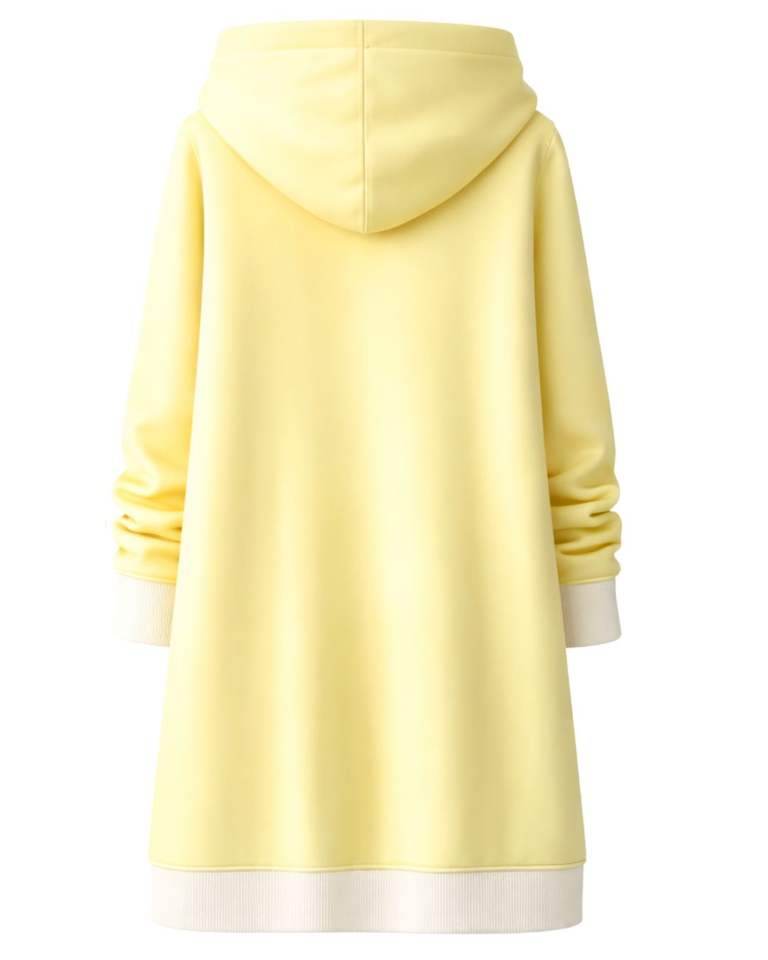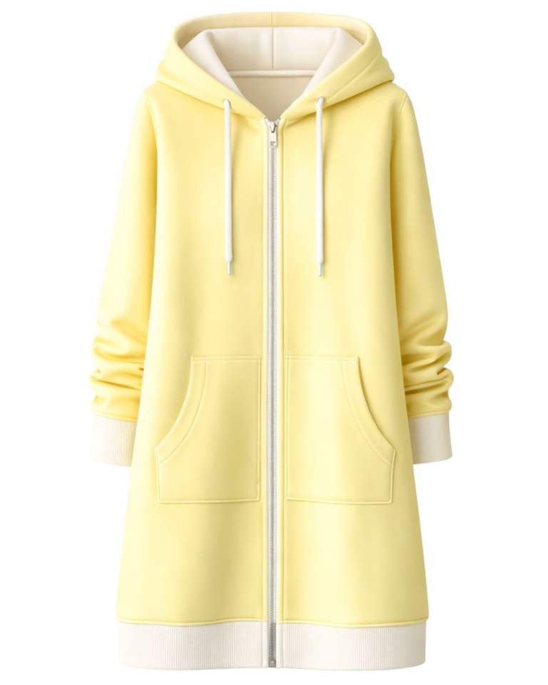 เสื้อฮู้ดซิปยาวสีเหลืองอ่อนสำหรับผู้หญิง เสื้อกันหนาวผ้าฟลีซมีฮู้ดพร้อมกระเป๋าจิงโจ้ เสื้อคลุมลำลองอุ่นสบาย รับผลิตตามแบบ OEM จากโรงงาน